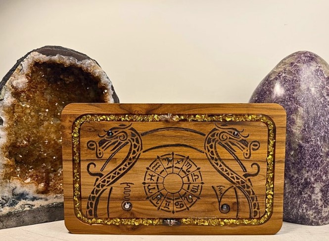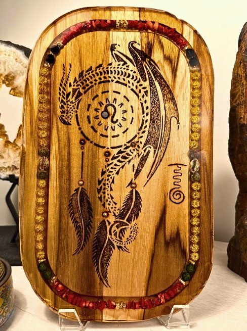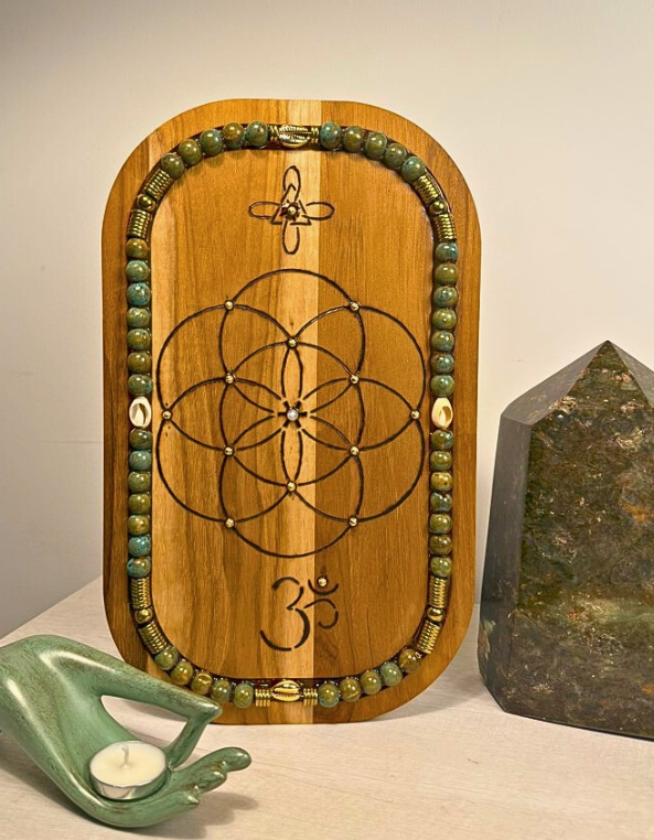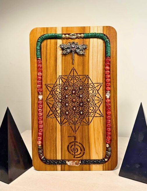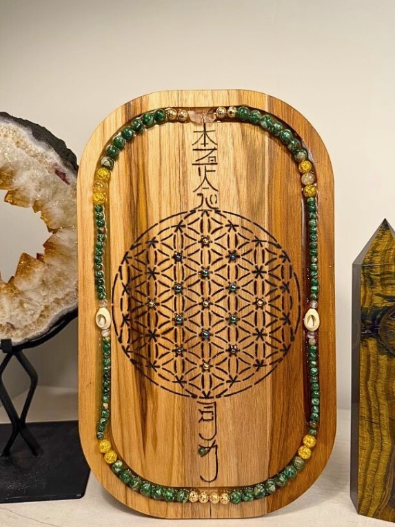 Limited edition meditation boards that open a portal of alignment as they unite heaven and earth through sacred geometry, the Tree of Life, and the eternal presence of dragons. These creations embody balance, expansion, and the infinite reflection of spirit.